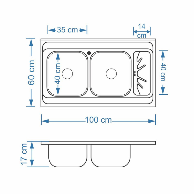 ابعاد نصب سینک : 60 × 100 سانتی متر